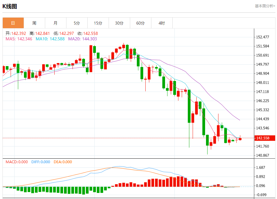 技术点评:142.30附近形成了一个支撑的底部,将带来走势短期内的稳定。