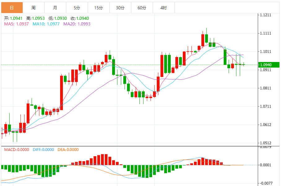 周一,欧元/美元徘徊于1.0942关口下方,现交投于1.0941附近,涨幅0.01%。