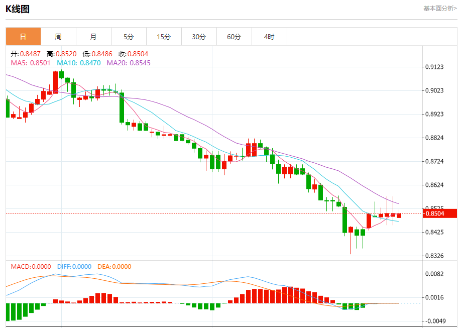 支撑位:0.8485 0.8465 0.8445