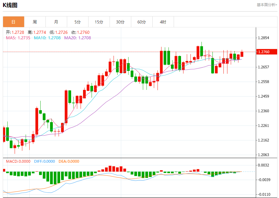 阻力位:1.2810 1.2785 1.2775