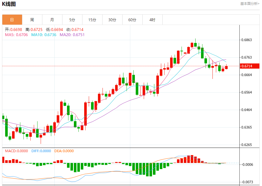 今日周四,澳元兑美元报0.6715,涨幅0.22%;美元兑加元报1.3353,跌幅0.21%;美元兑瑞郎报0.8499,跌幅0.12%。