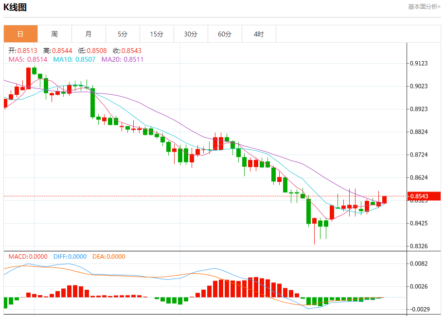 今日周五,澳元兑美元报0.6686,跌幅0.03%;美元兑加元报1.3377,跌幅0.13%;美元兑瑞郎报0.8545,涨幅0.29%。