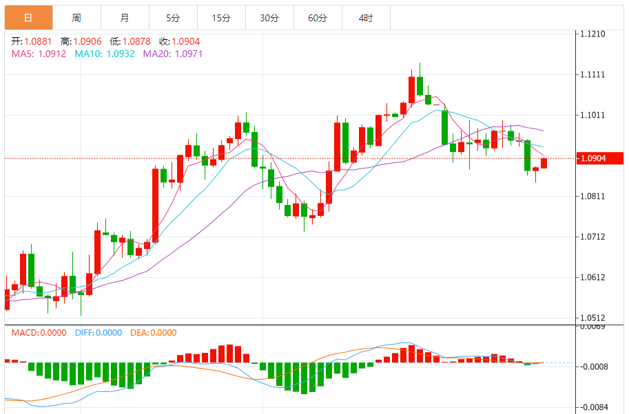 周四,欧元/美元徘徊于1.0904关口下方,现交投于1.0903附近,涨幅0.19%。
