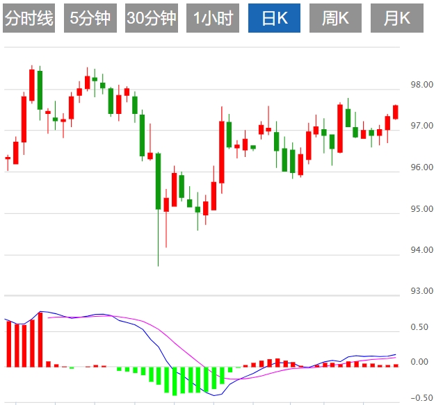 周五亚盘,澳元/日元上涨0.22%至97.56附近,加元/日元上涨至109.94附近。