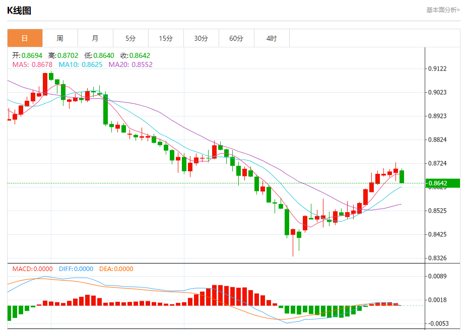 支撑位:0.8630 0.8605 0.8590