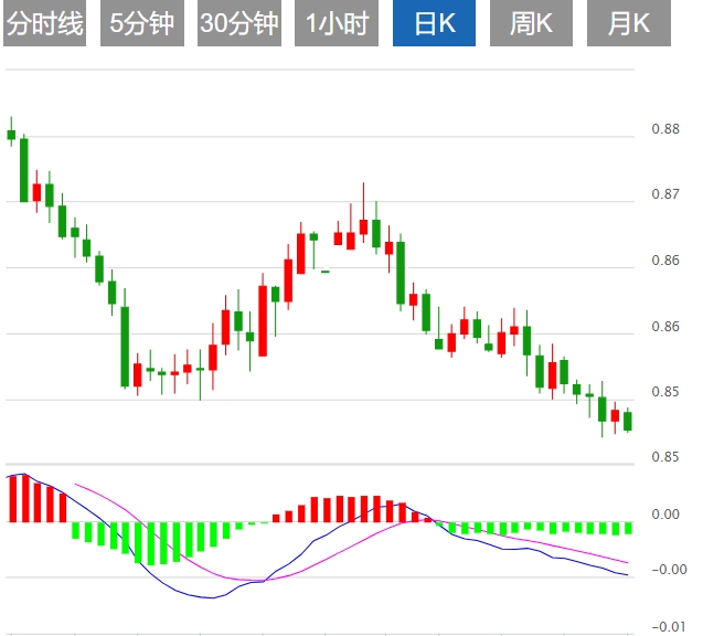 周一欧盘,欧元/英镑下跌0.17%,交投于0.8527附近,英镑/日元下跌0.15%,交投于187.87附近。