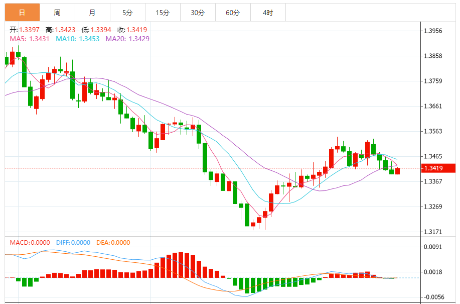 周三,美元/加元徘徊于1.3420关口下方,现交投于1.3418附近,涨幅0.16%。