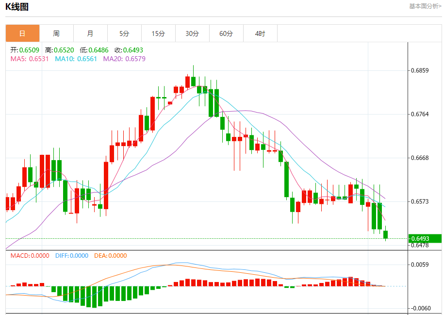技术点评:只要0.6525阻力位不被突破,向下跌破0.6480位置的风险很高。