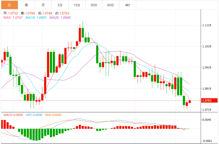 周三,欧元/美元徘徊于1.0764关口下方,现交投于1.0763附近,涨幅0.08%。