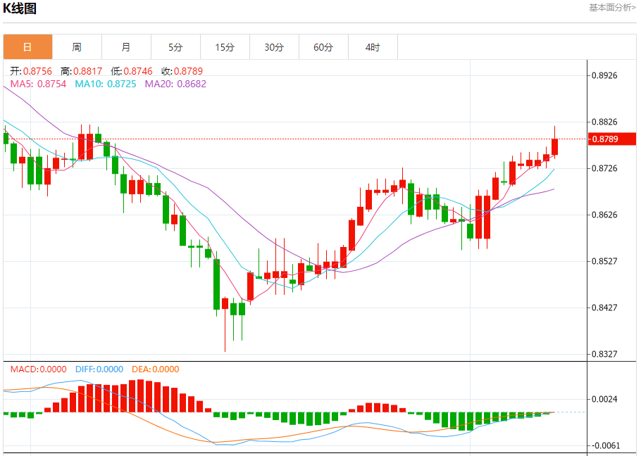 今日周二,澳元兑美元报0.6528,跌幅0.05%;美元兑加元报1.3447,跌幅0.04%;美元兑瑞郎报0.8791,涨幅0.38%。