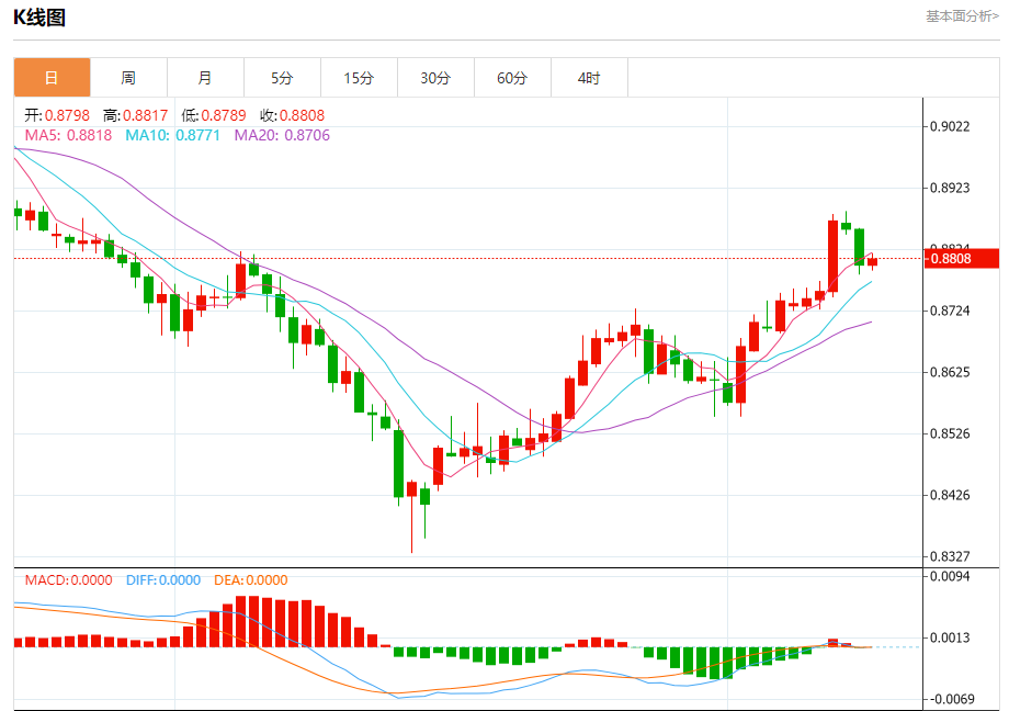 技术点评:只要0.8825阻力位不被突破,向下跌破0.8780位置的风险很高。