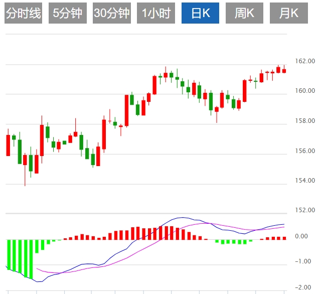 在阻力位方面,第一个阻力161.869在重叠阻力位附近。这个水平是一个抛压一直很强的历史水平,可能会成为进一步上涨的障碍。