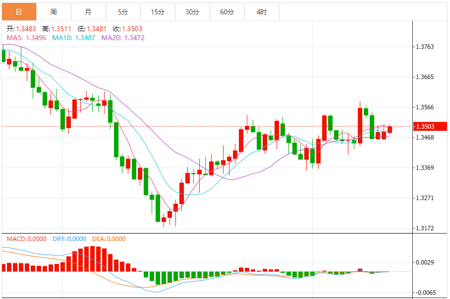 周二,美元/加元徘徊于1.3505下方,现交投于1.3503附近,涨幅0.12%
