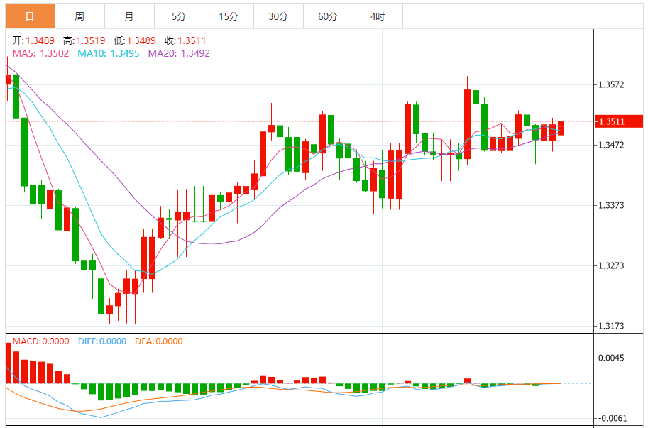 周一,美元/加元徘徊于1.3512下方,现交投于1.3511附近,涨幅0.04%