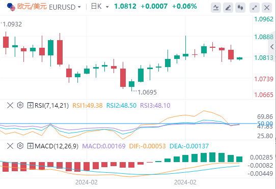 3月1日,周五亚市早盘,欧元/美元徘徊于1.0812近。