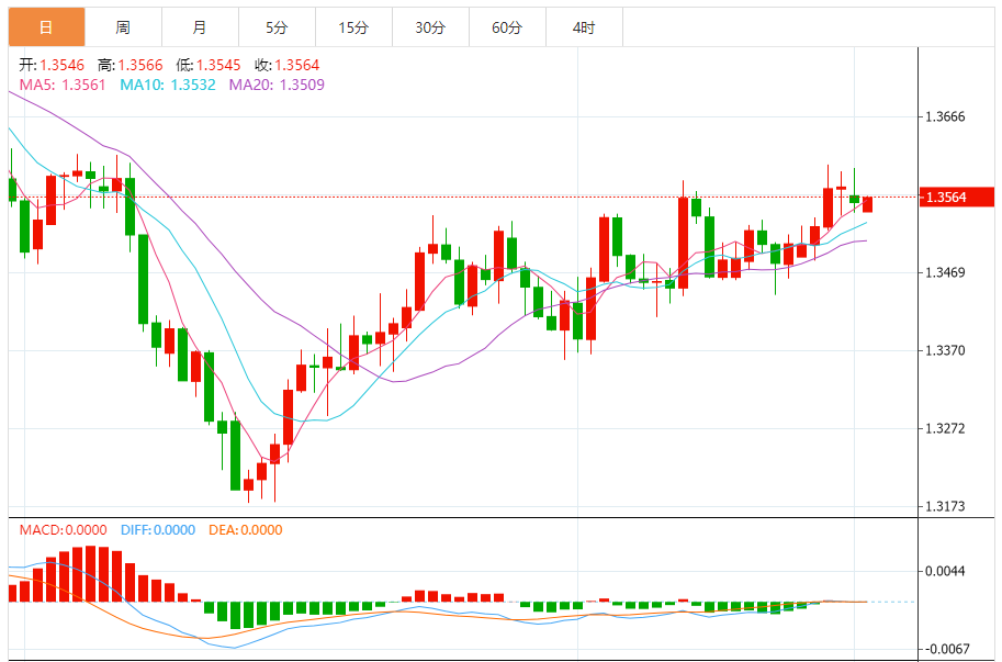 周一,美元/加元徘徊于1.3564下方,现交投于1.3563附近,涨幅0.04%。