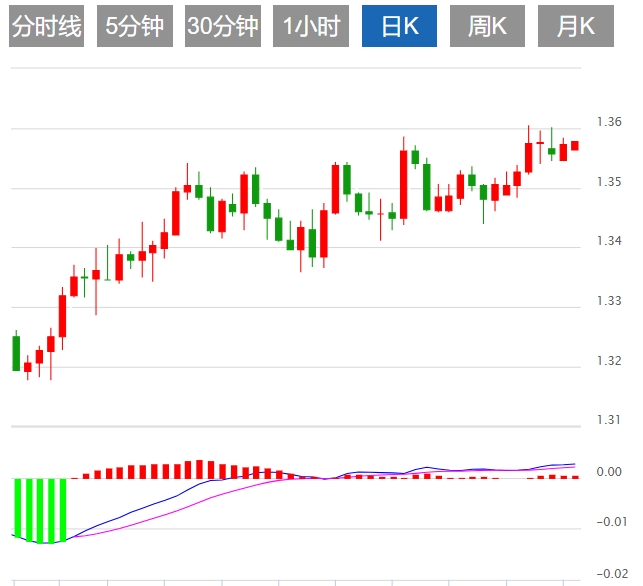 美元/加元在上周晚些时候从支撑位1.3545反弹后,周一盘整上行。如果涨幅在未来几个交易日获得牵引力,则上方阻力位在 1.3620,这是 2023 年 11 月/12 月暴跌的 61.8% 斐波拉契回撤位。再往上看,注意力转向1.3700。