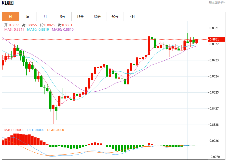 支撑位:0.8825 0.8805 0.8785