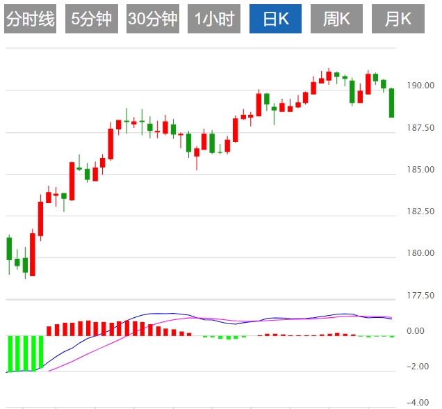 今日预期交易区间在189.00和189.60之间