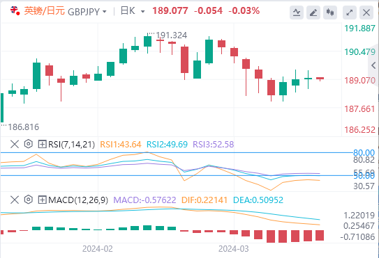 周四开盘,英镑/日元从189.00关口反弹至日线高位189.50附近。英镑/日元在189.43的200小时简单移动均线(SMA)遇到下行技术支撑,在188.60附近创下日内低点,随后反弹至日线开盘水平。
