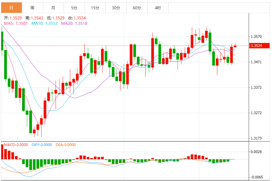 周五,美元/加元徘徊于1.3536下方,现交投于1.3534附近,涨幅0.03%。