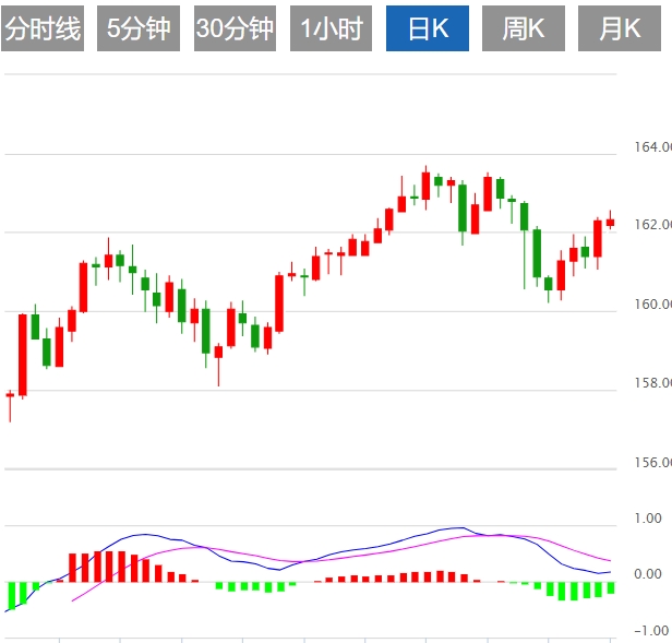 欧元/日元跌破 162.00 中期
