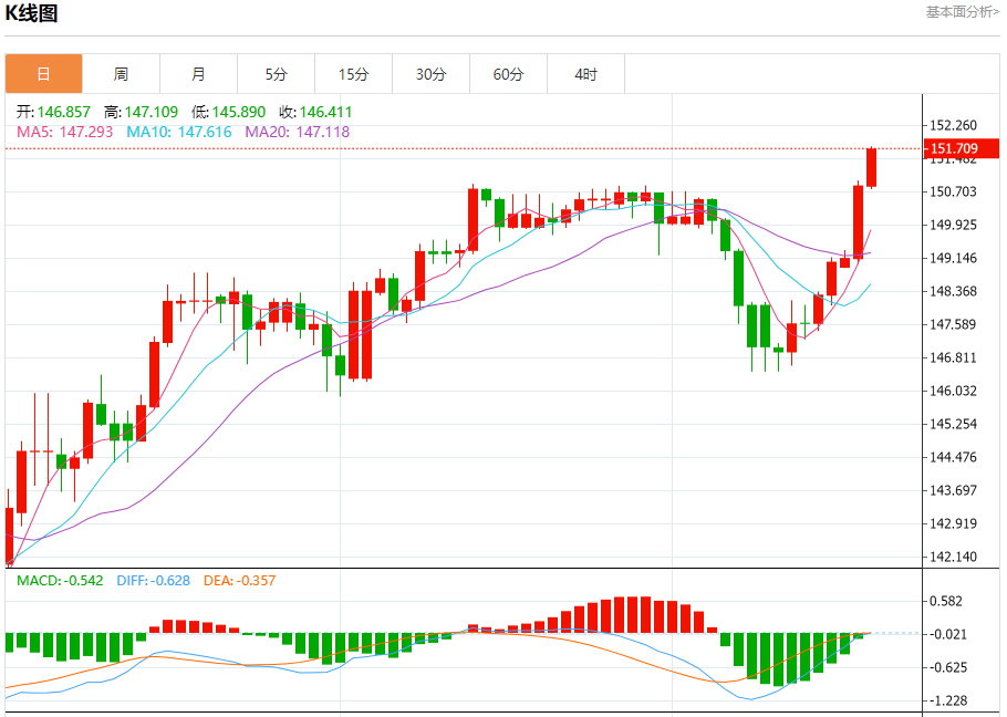 今日周三,欧元兑美元报1.0845,跌幅0.19%;英镑兑美元报1.2694,跌幅0.22%;美元兑日元报151.705,涨幅0.57%。