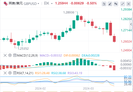 3月22日,周五欧市盘中,英镑/美元仍处于弱势,因为市场情绪相当低迷。英国央行(BOE)今年将降息的预期升温盖过了2月份零售销售数据(该数据大致好于市场预期),英镑/美元未能找到支撑。