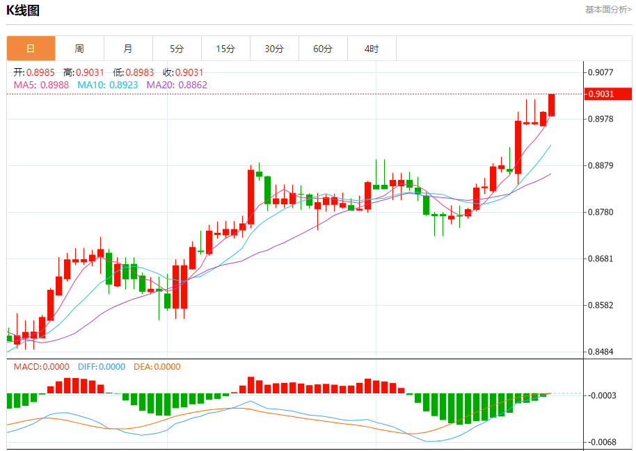 今日周二,澳元兑美元报0.6548,涨幅0.13%;美元兑加元报1.3564,跌幅0.17%;美元兑瑞郎报0.9033,涨幅0.42%。