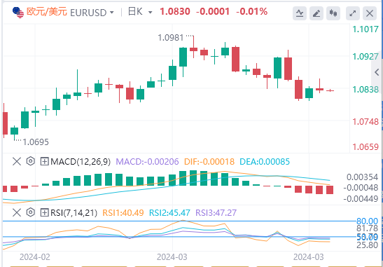 周二,在美元走强的背景下,欧元/美元从周线高位1.0864回调,并跌向1.0820区域。截至发稿时,欧元/美元报1.0828,下跌0.08%。