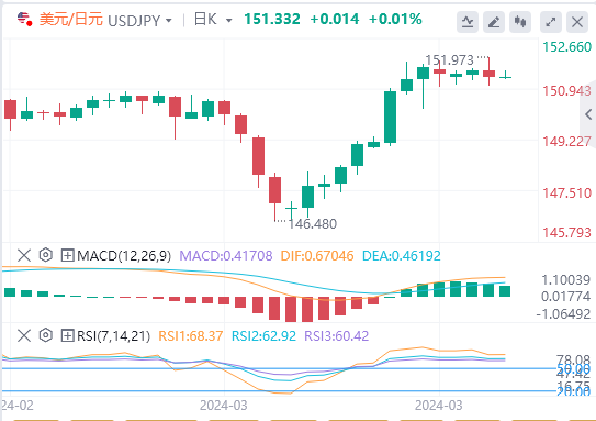 隔夜美联储理事克里斯托弗-沃勒发表鹰派言论令降息希望降温,提振美元接近月度高位,为美元/日元提供支撑。沃勒表示,最近几个月的通胀热度高于预期以及美国经济目前维持韧性使美联储有足够的空间在更长时间内维持较高水平利率。不过,交易员们似乎不愿展开激进的方向性赌注,而更愿意等待周五公布的美国个人消费支出(PCE)价格指数。
