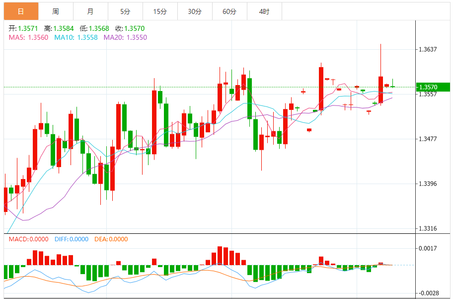 支撑位:1.3568 1.3571 1.3574