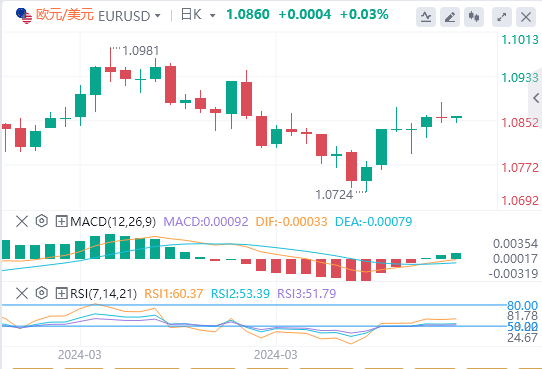 欧元/美元在日内早些时候升向1.0900后,失去了牵引力,周二收盘持平。欧市盘中持稳于1.0860附近,因为市场正在为美国公布通胀数据做准备。