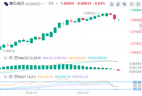 从技术上讲,澳元/纽元在未来几天值得关注。本周的回落增加了从1.0567反弹到1.0952的可能性,领先于中等趋势线阻力位。坚挺突破1.0836支撑位将表明,从1.1085开始的横盘整理模式将首先开始回落至55日均线(目前为1.0800),然后跌向1.0567支撑位。