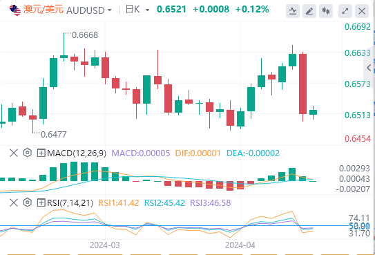 4月11日,周四欧市早盘,澳元/美元在心理价位0.6500附近找到临时支撑。由于市场对美联储(Fed)在今年上半年开始降息的预期减弱,对风险敏感货币的偏好下降,澳元/美元将继续下行。