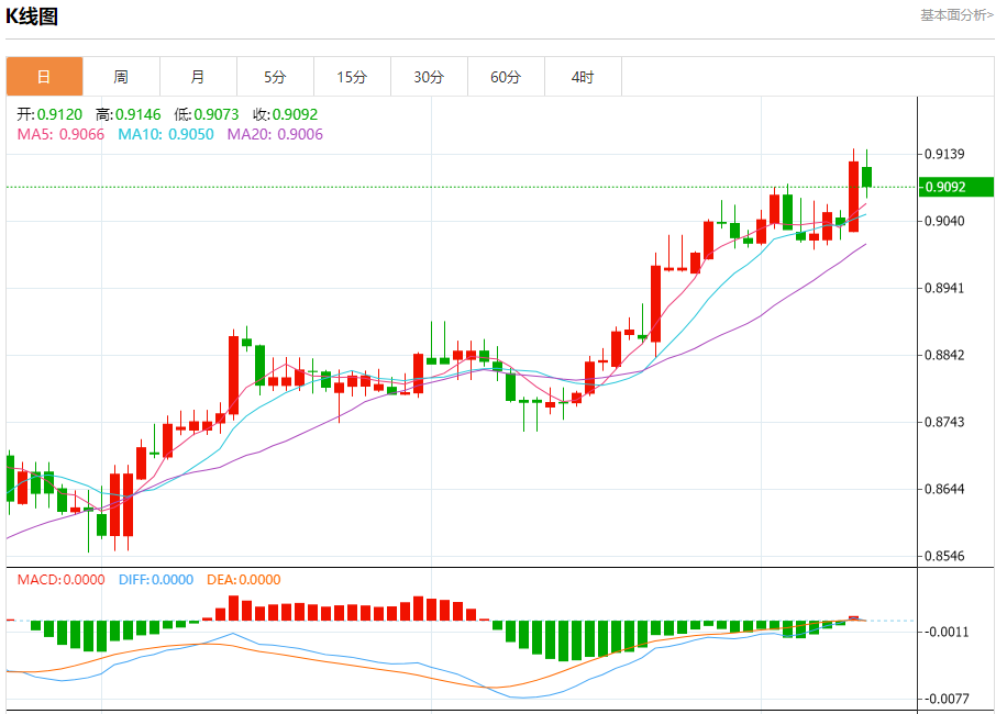 支撑位:0.9105 0.9085 0.9065