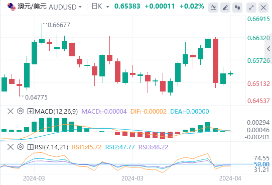 4月12日,周五亚市早盘,澳元/美元徘徊在0.6538附近。