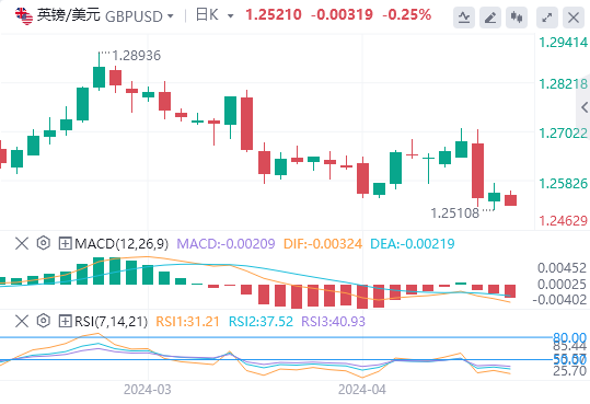 另一方面,近期CPI通胀数据超预期以及非农就业数据(NFP)走强引发了市场对美联储将不得不推迟今年降息次数和时间的猜测。这反过来又为美元提供了一些支撑,并为英镑/美元货币对带来了不利因素。投资者将从美国4月密歇根消费者信心指数初值以及美联储博斯蒂克和戴利周五晚些时候的讲话中获得更多线索。