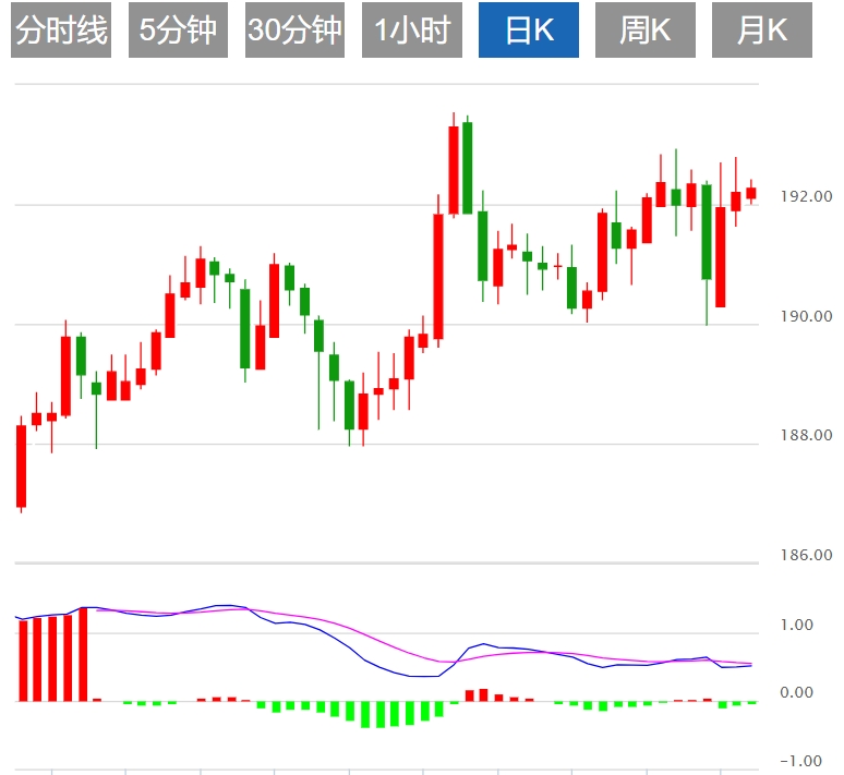今天的预期交易区间在191.35到192.85之间。