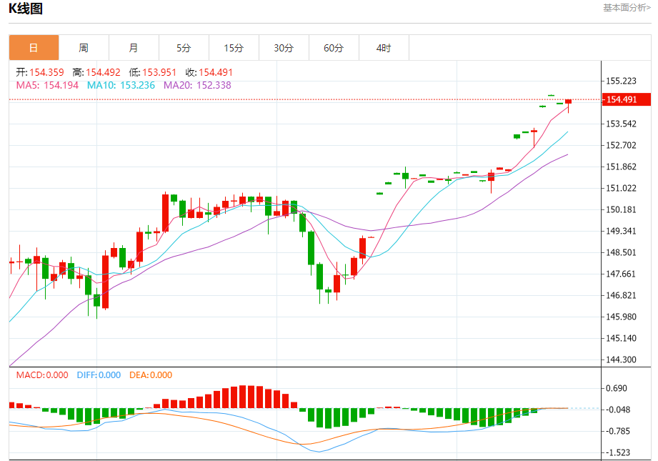 阻力位:155.00 154.75 154.55