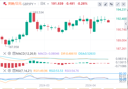 4月19日,周五亚市早盘,英镑/日元徘徊在附近。英镑/日元连续第二天持平,徘徊在192.30附近,涨幅最小为0.05%。由于担心日本当局的干预,该交叉货币对连续第三天仍无法突破191.90/192.80区间。