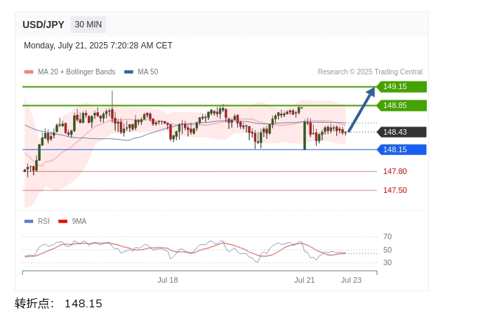 今日分析: 在 148.15 之上,看涨,目标价位为 148.85 ,然后为 149.15 。