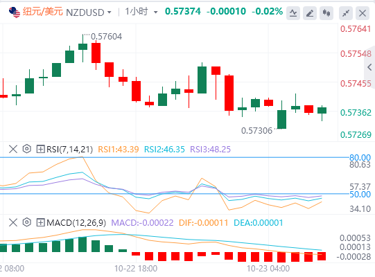 10月23日,周四亚市盘中,纽元/美元徘徊在0.5737附近。