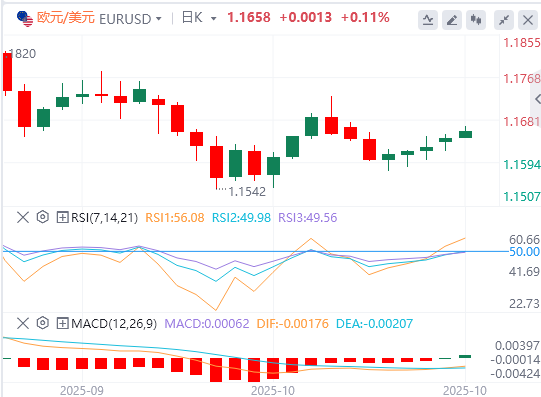 周二,欧元/美元连续第五天走高,截至撰写本文时,欧元/美元从上周的1.1580低点略高于1.1650。中美贸易紧张局势缓和的初步迹象、与日本达成的稀土协议以及对美联储(Fed)周三进一步降息的希望,正在提振风险偏好,并使避险美元(USD)承压。