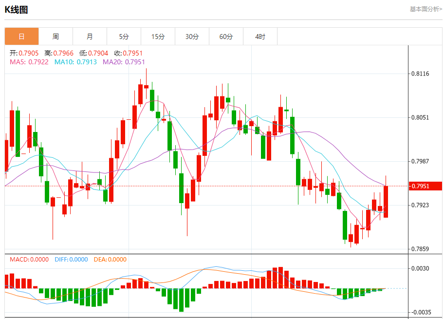 今日周一,澳元兑美元报0.6686,跌幅0.14%;美元兑加元报1.3766,涨幅0.24%;美元兑瑞郎报0.7952,涨幅0.36%。