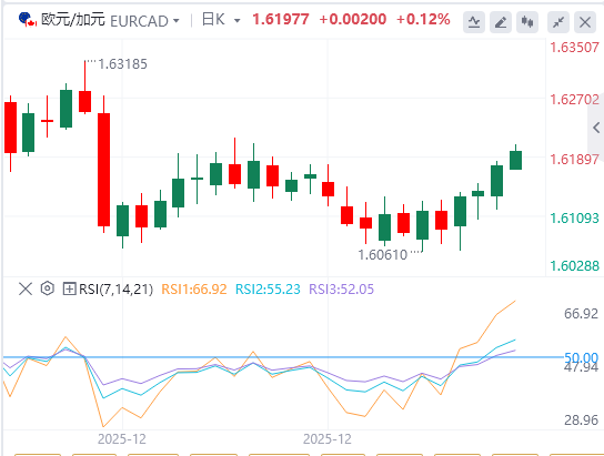 数据方面,加拿大经季节调整后的艾维采购经理人指数(PMI)从11月的48.4升至2025年12月的51.9,超过预期的49.5,显示出在一个月收缩后重返扩张。加拿大10月份的贸易收支数据将于周四公布,重点关注周五的劳动力市场数据。