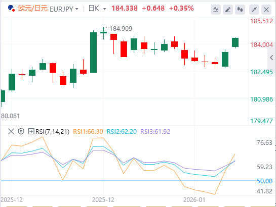 1月12日,周一欧市初盘,欧元/日元连续第二个交易日上涨,目前徘徊在184.30附近。