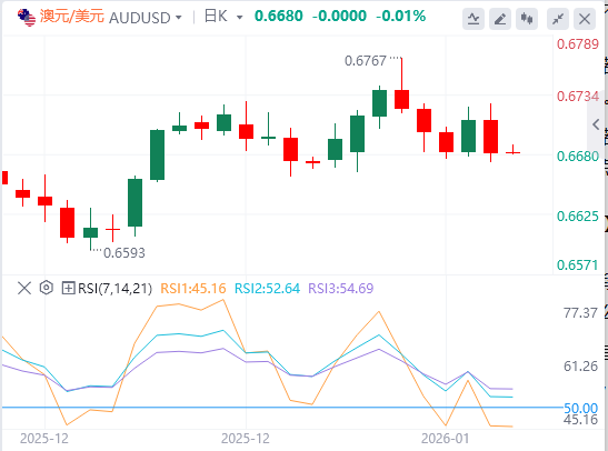 下行方面,1月9日的低点0.6663将为买家带来一定安慰。持续下跌可能导致10日指数均线跌至2025年12月4日的0.6614,随后是100日均线均线0.6587。