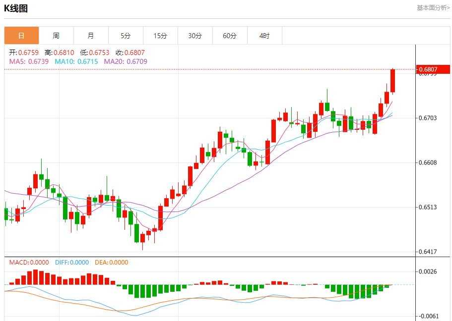 今日周四,澳元兑美元报0.6810,涨幅0.71%;美元兑加元报1.3813,跌幅0.16%;美元兑瑞郎报0.7930,跌幅0.31%。