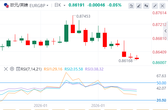 2月4日,欧元基本持平,周三对强英镑的表现略高于新的五个月低点0.8620。自11月中旬见顶0.8865以来,该货币对一直走低,本周连跌,跌破关键支撑区0.8645,且无反应迹象。